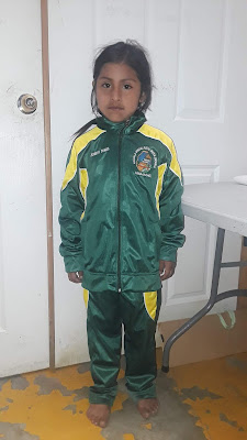 Trois petites filles très heureuses de vous montrer leurs uniformes scolaires. Merci aux grands généreux Parrain et Marraines. C'est un beau cadeau pour elles, trois petites soeurs d'une famille très démunies. Merci de tout Coeur!!!!